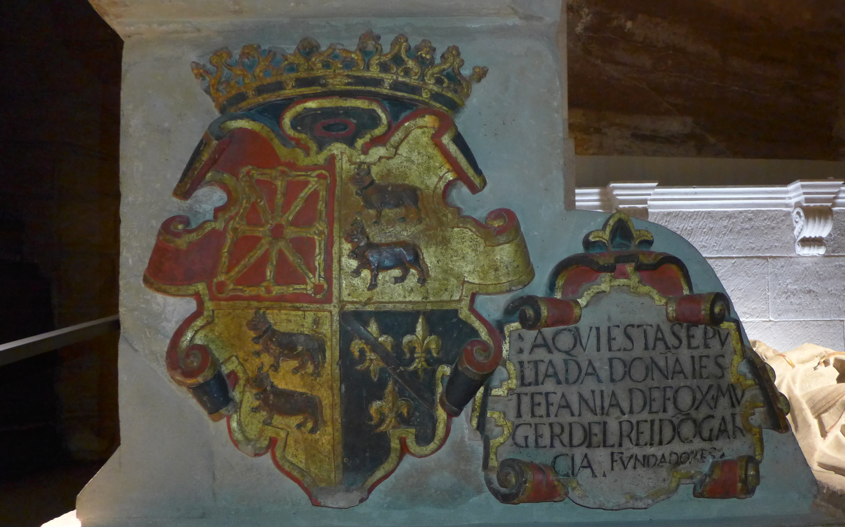 “Escudo de Castilla y León, escudo de Armas de Felipe II, y escudo del Reino de Navarra”.“Escudo de Armas de Carlos I de España y V de Alemania”.“Retablo Mayor de Santa María la Real de Nájera”.“Entrada al Panteón Real”.